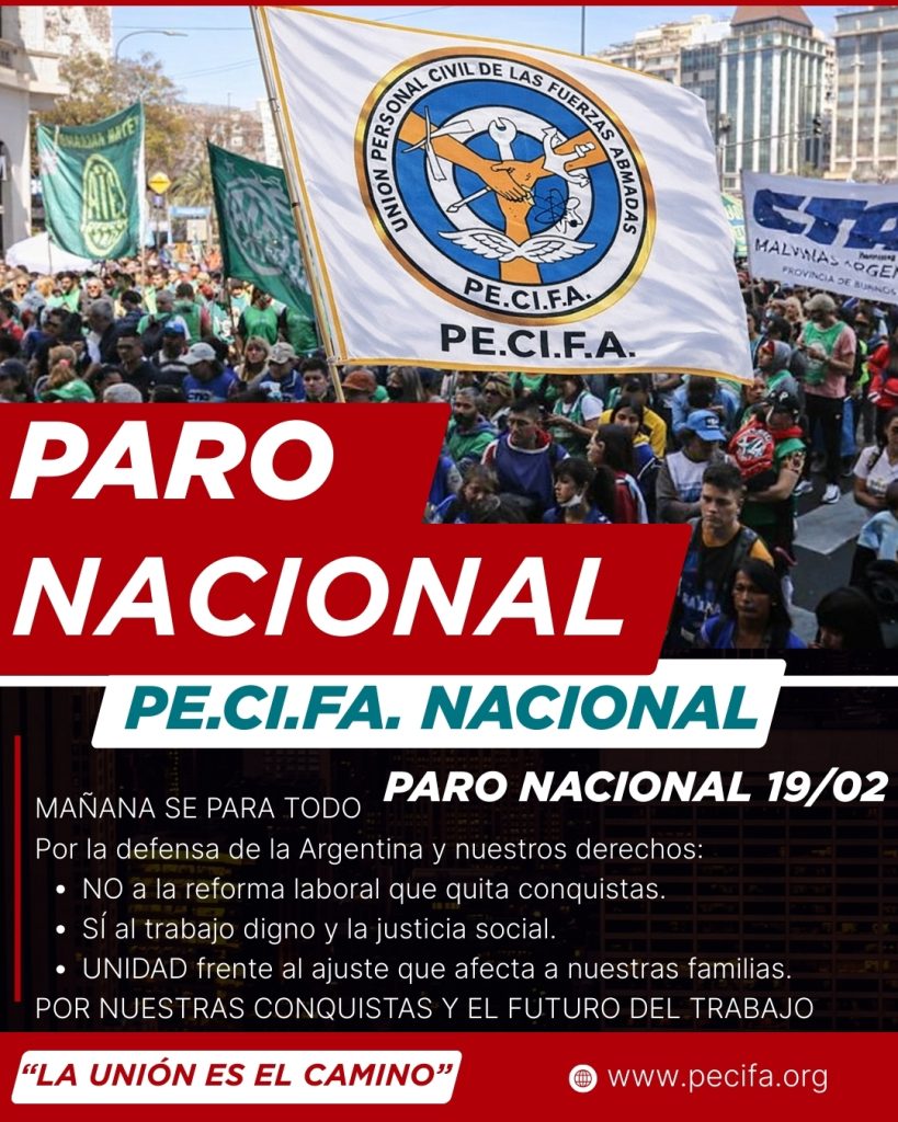 PE.CI.FA. NACIONAL CONVOCA A PARO GENERAL PARA ESTE 19 DE F...